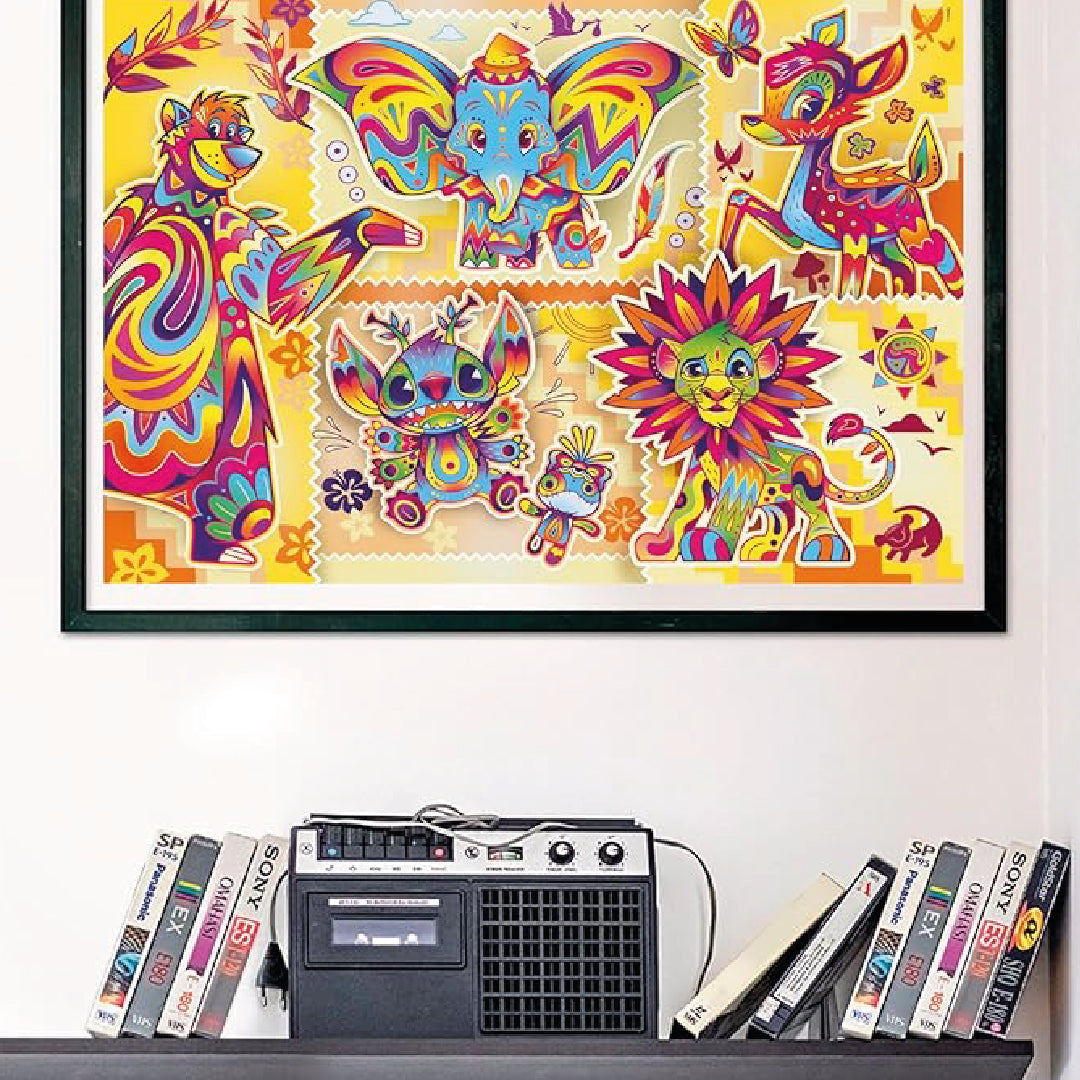 O Puzzle Animais Disney da Clementoni, com 1000 peças, junta os animais mais icónicos dos filmes da Disney numa composição vibrante e artística. Baloo, Dumbo, Bambi, Simba, Stitch e muitos outros surgem num estilo gráfico moderno, psicadélico e cheio de energia, ideal para quem procura algo diferente e visualmente marcante.